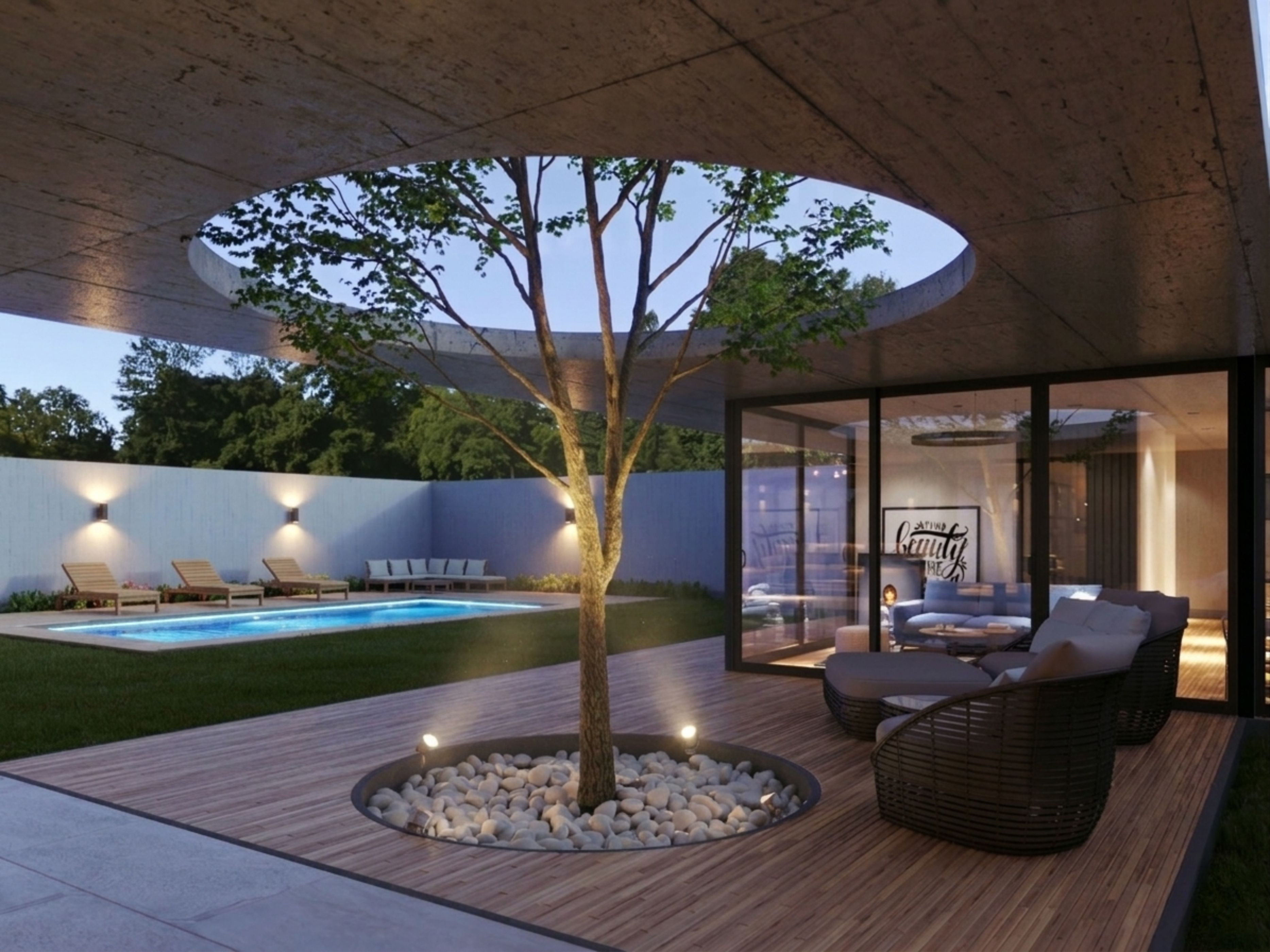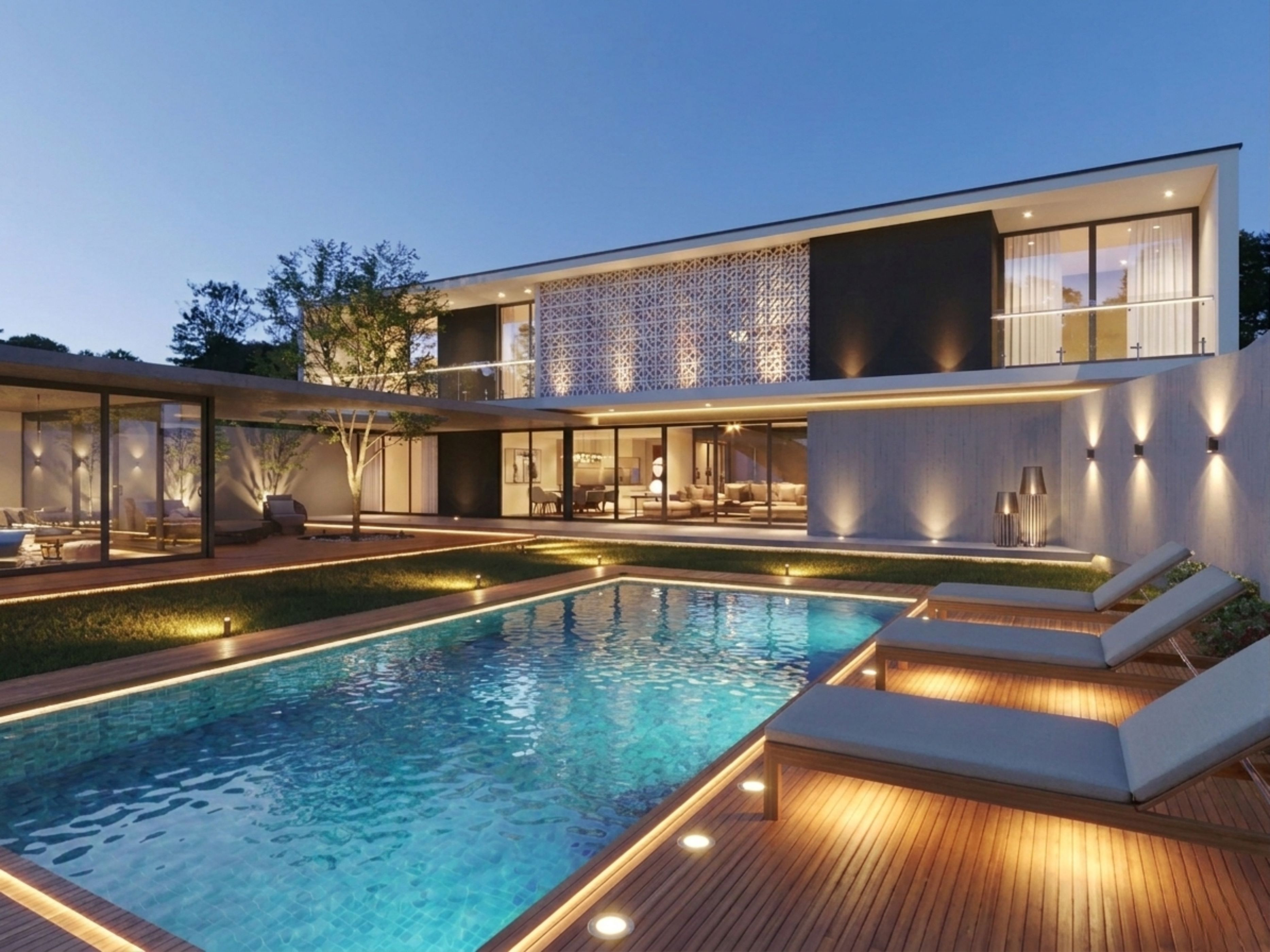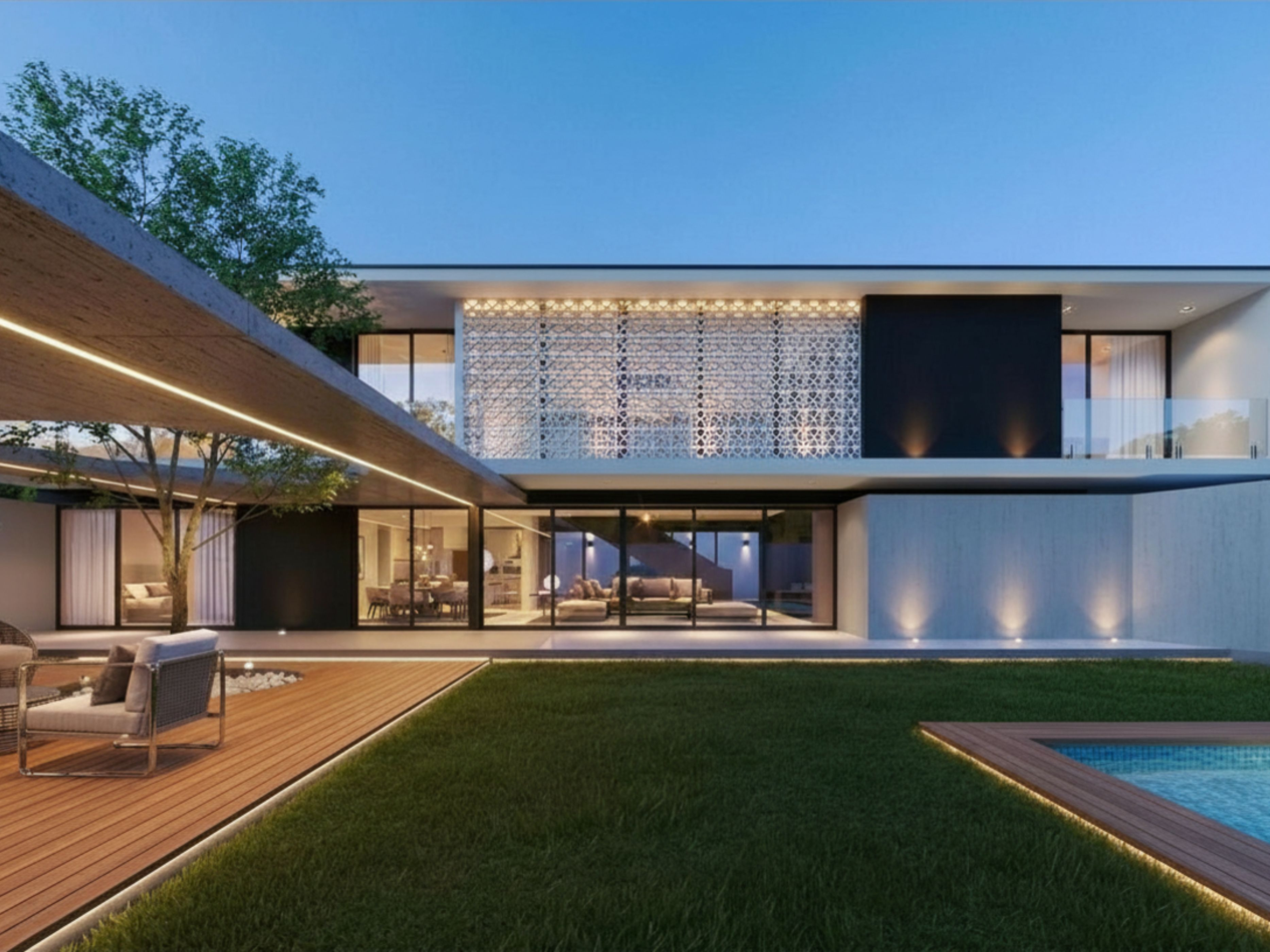 Nuestra clienta se inspiró en proyectos previos desarrollados por nuestro estudio en Piura y Pimentel, valorando el uso de grandes ventanales, dobles alturas, ambientes amplios y acabados de alta gama.
