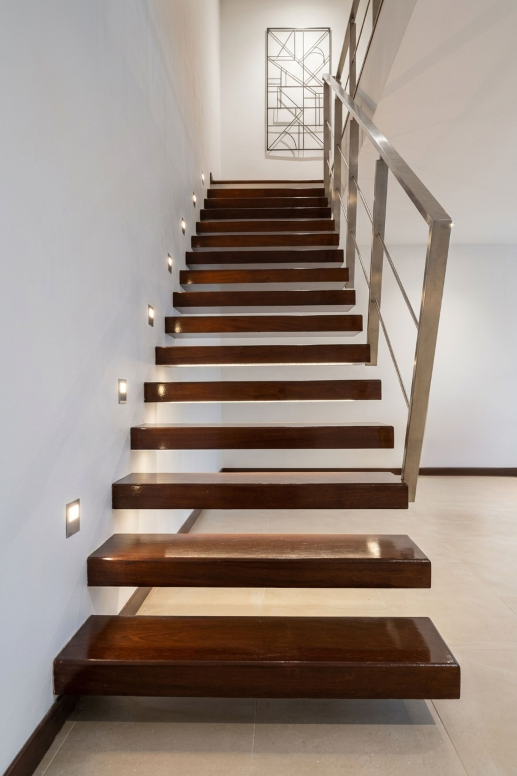 - Carpintería: mamparas de vidrio, barandillas metálicas y detalles como goterones para durabilidad
