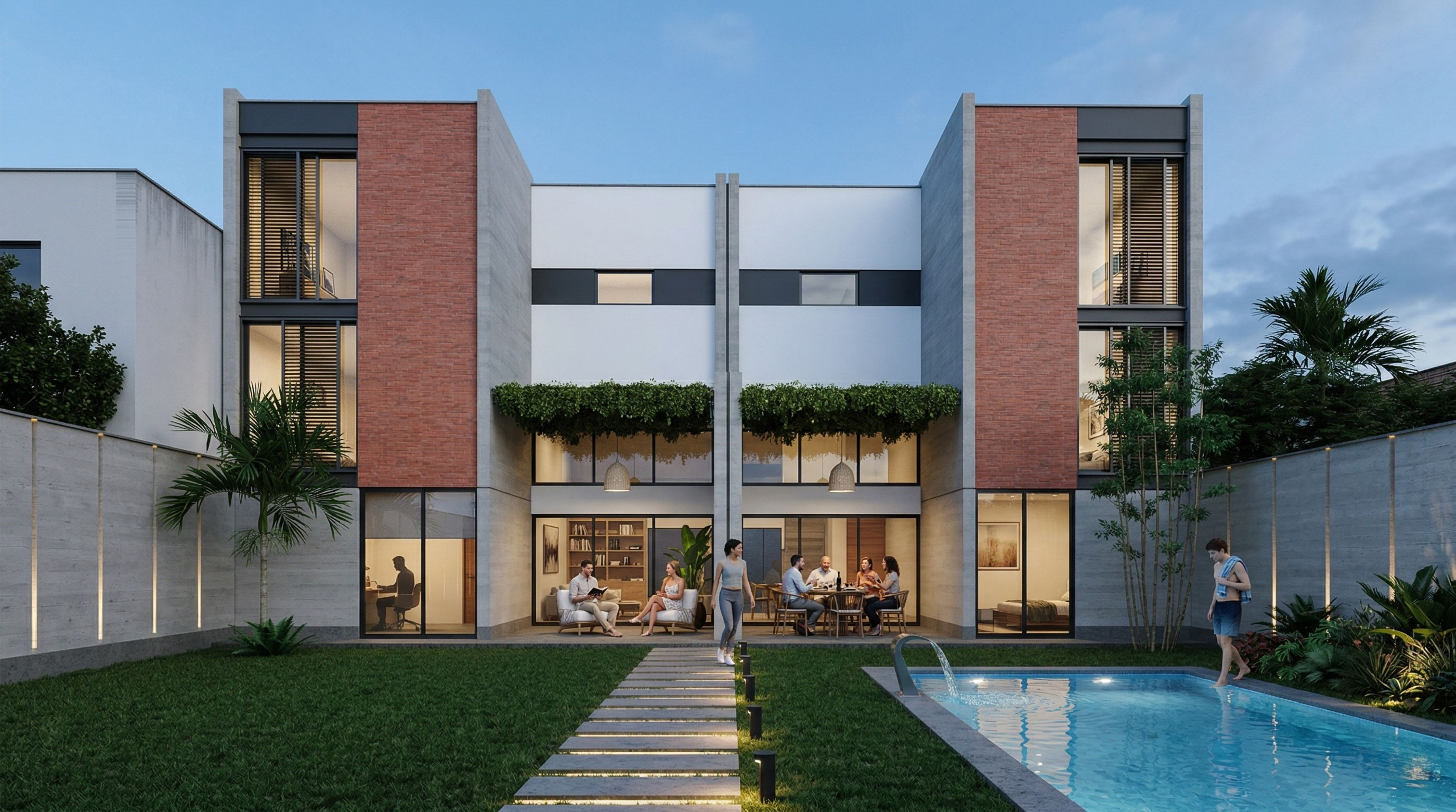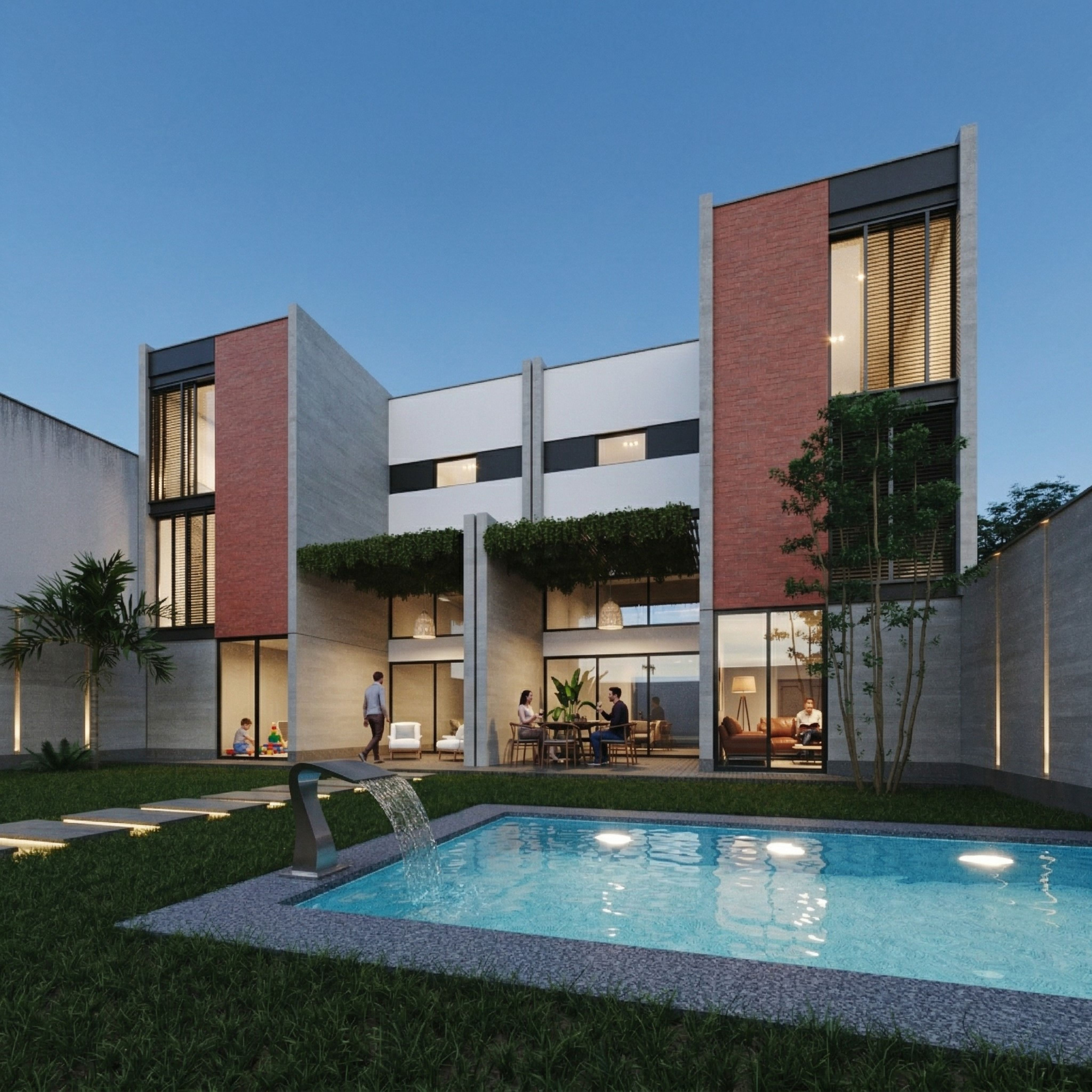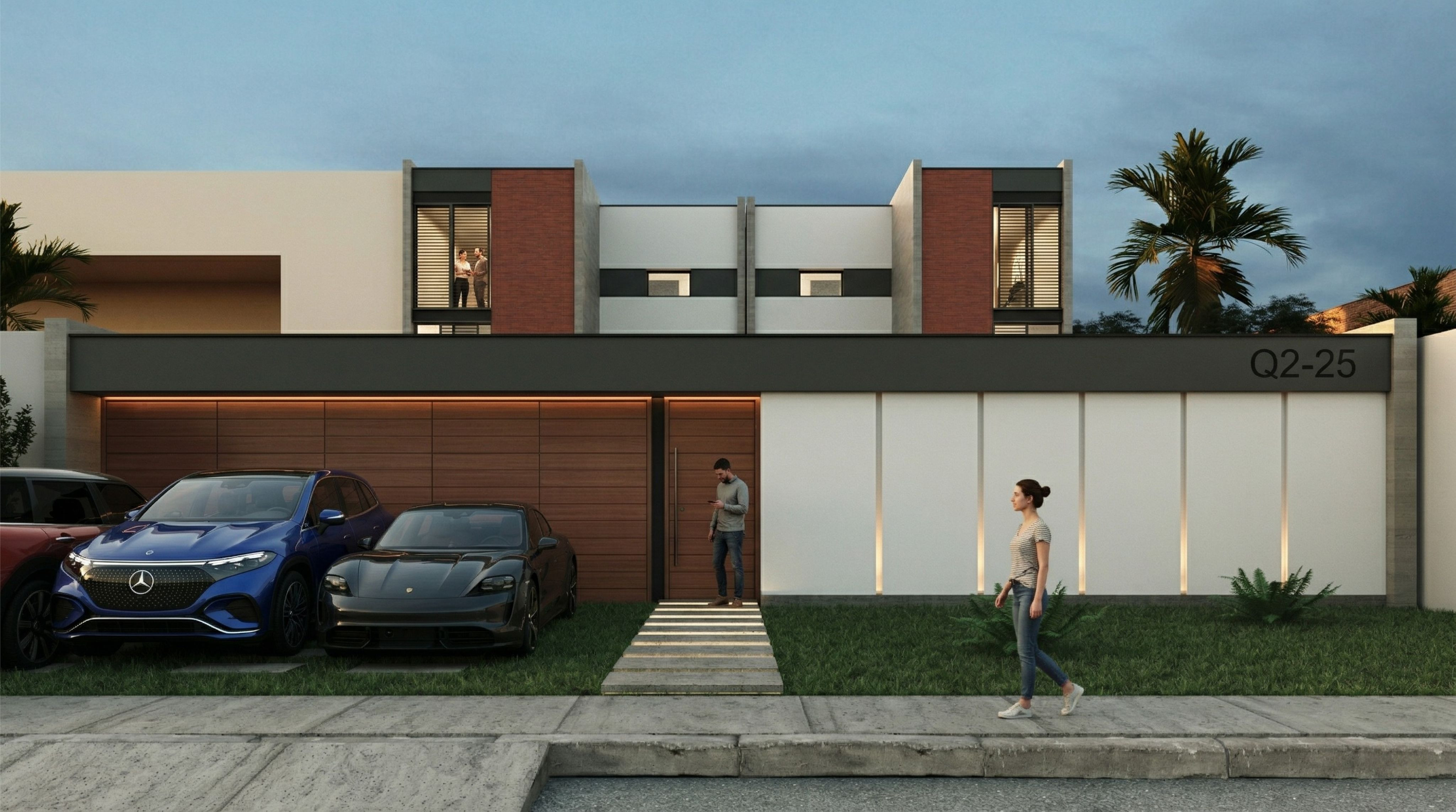 Se diseñaron dos viviendas con un lenguaje arquitectónico unificado, manteniendo coherencia volumétrica y estética, pero permitiendo una experiencia individual en cada unidad. Esta estrategia optimiza costos de diseño y construcción, y potencia el proyecto como producto inmobiliario dentro del condominio.