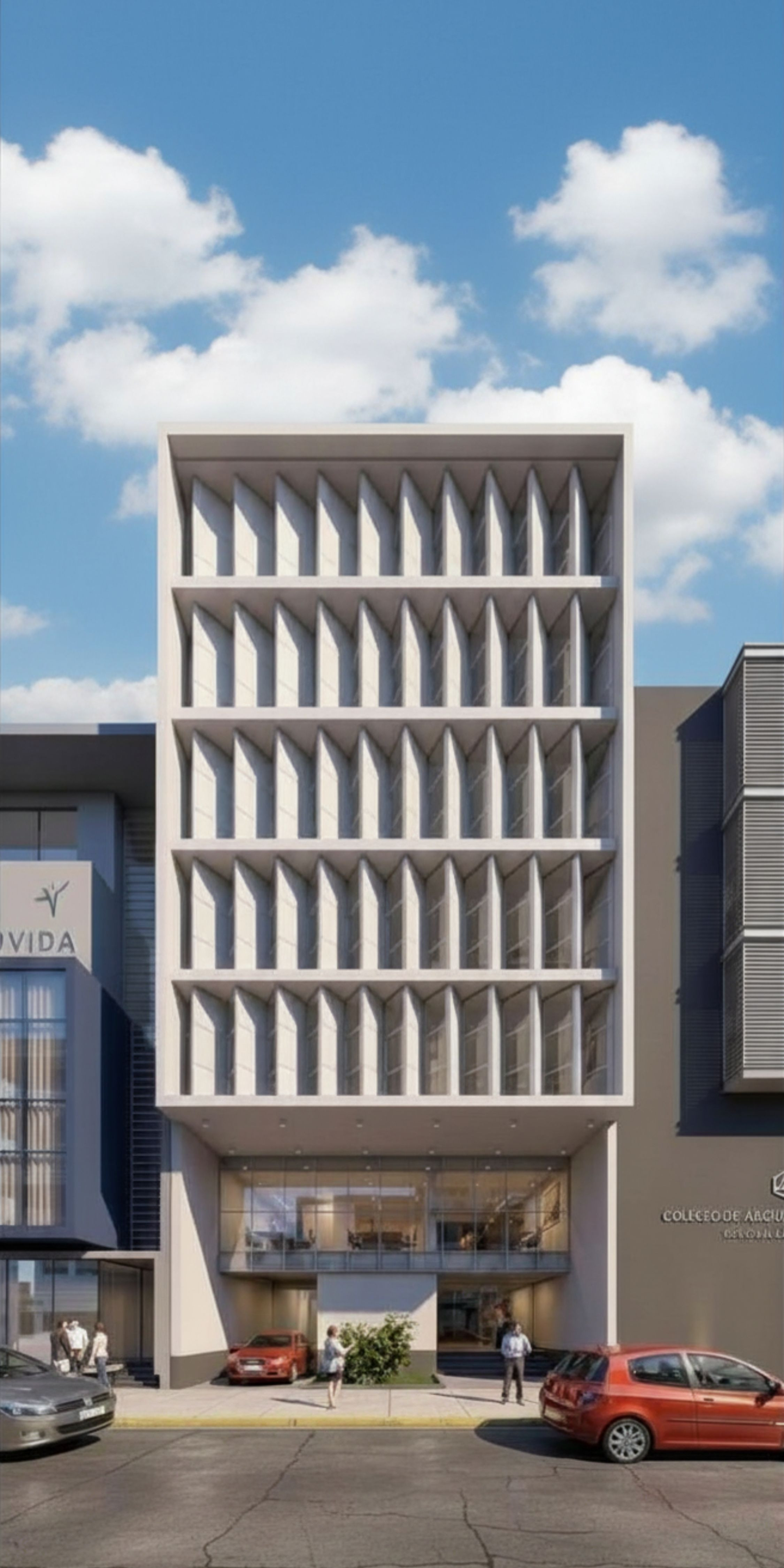 - Tercer al séptimo nivel: 8 consultorios médicos por piso, de 20 m² a 35 m², diseñados para alquiler flexible y alto rendimiento comercial