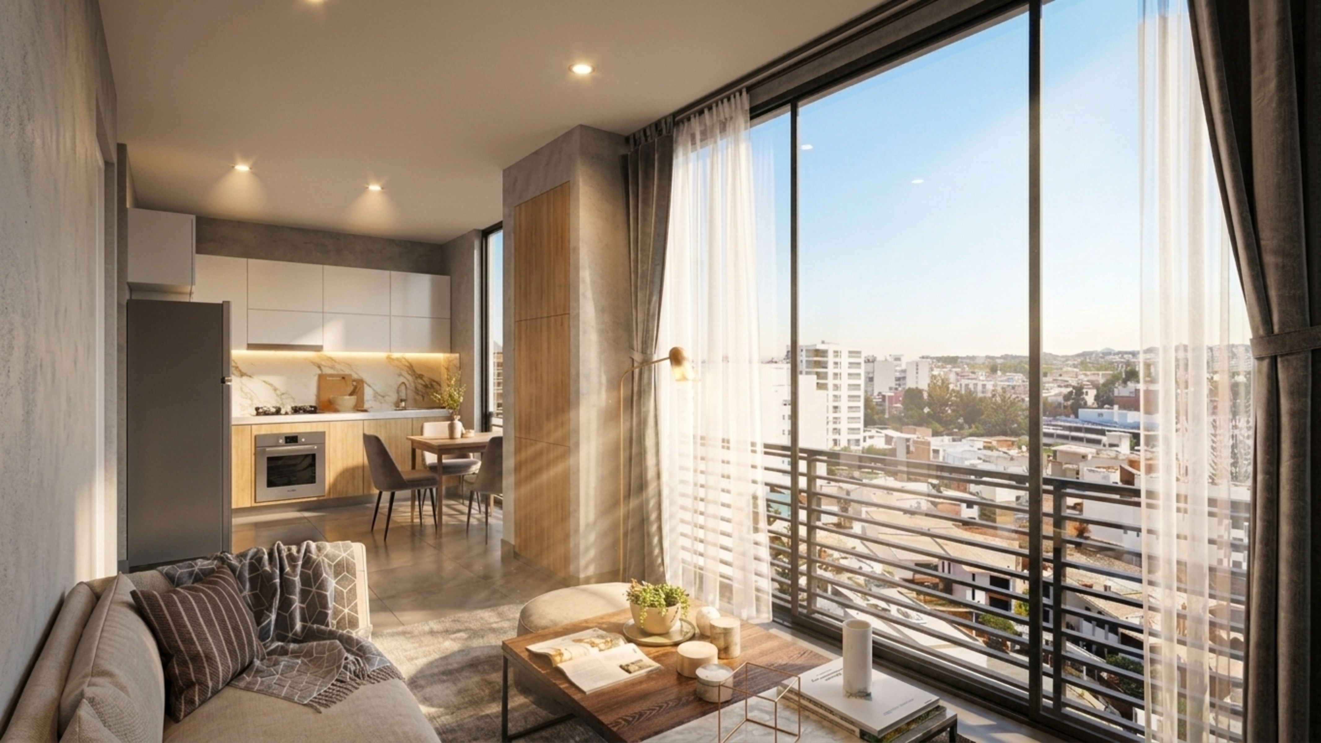 Diseñamos accesos peatonales funcionales, maximizamos el aprovechamiento del área libre y propusimos un diseño arquitectónico sobrio y eficiente. Cada departamento fue planificado para garantizar una circulación eficiente, ventilación cruzada y excelente iluminación natural. Las unidades de un dormitorio cuentan con cocina tipo kitchenette integrada al área social, mientras que los departamentos de dos dormitorios poseen una cocina cerrada con lavandería independiente. Se priorizó el uso de materiales de bajo mantenimiento y acabados funcionales, ideales para familias jóvenes, parejas y profesionales que buscan una vivienda práctica y moderna.